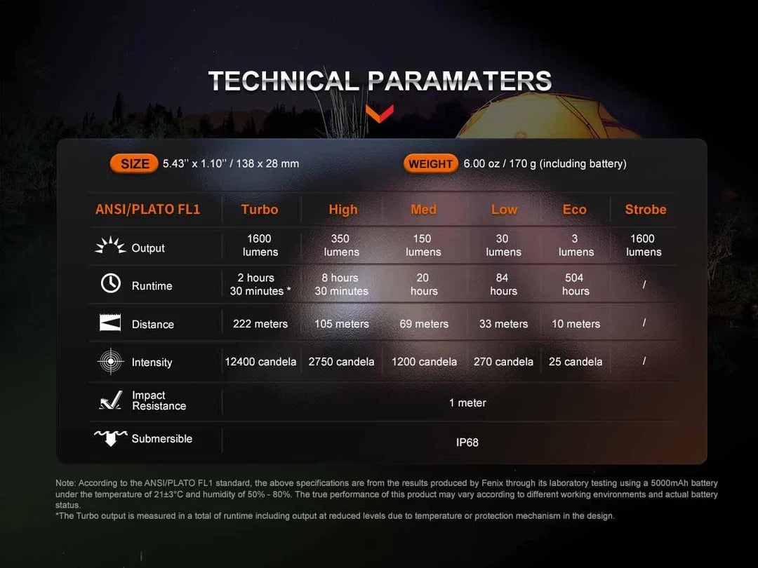 Fenix E-CP 2-in-1 Flashlight Power Bank | 1600 Lumens | 222m Throw | 5 Levels + Strobe | IP68