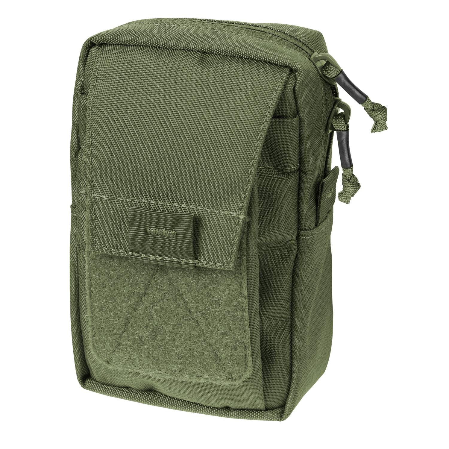 The main pocket offers generous space with internal elastic straps for item separation. A front pocket with hook-and-loop (Velcro) closure allows quick access to frequently used items. - Modular attachment compatibility