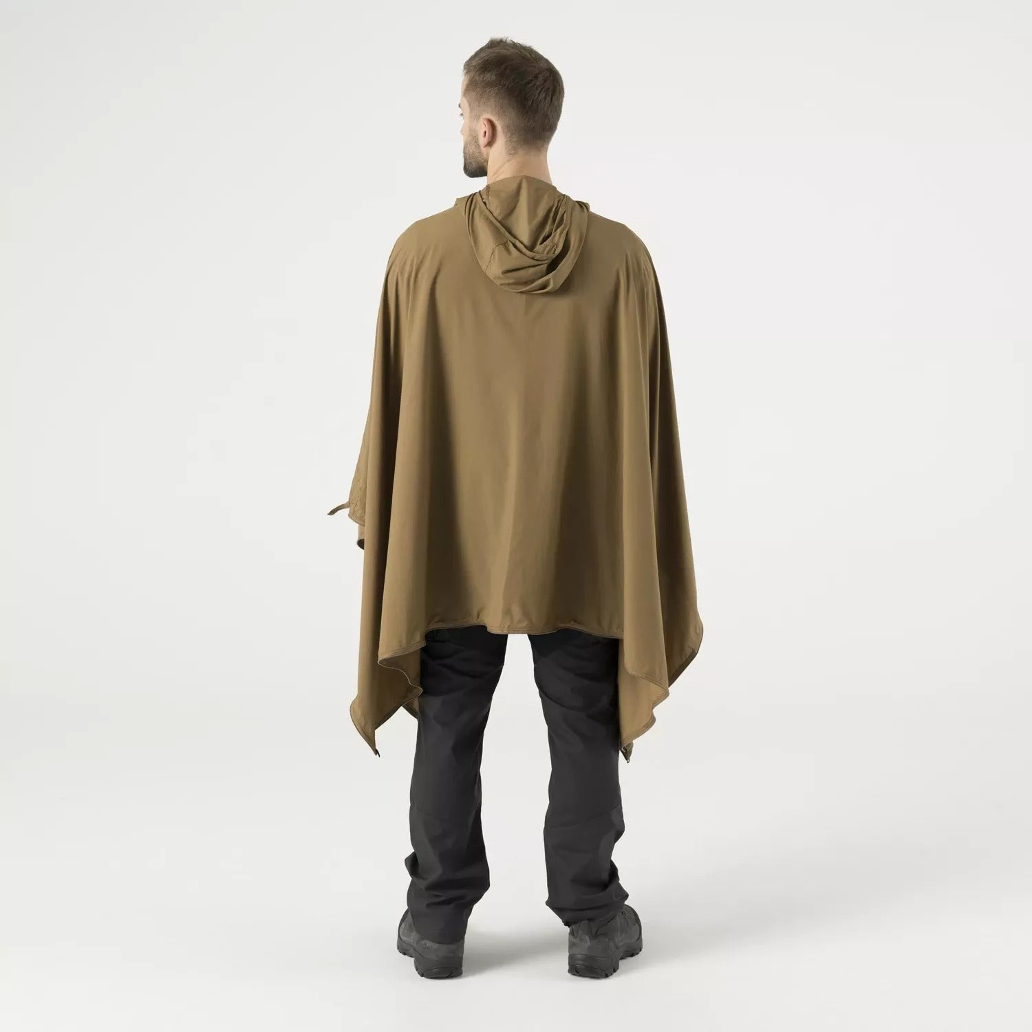 Opened fully, it forms a hooded cape (poncho) that covers head, shoulders, and back. Works with vests, duty belts, or pack hip belts without interfering with gear manipulation. - A modern take on a classic concept