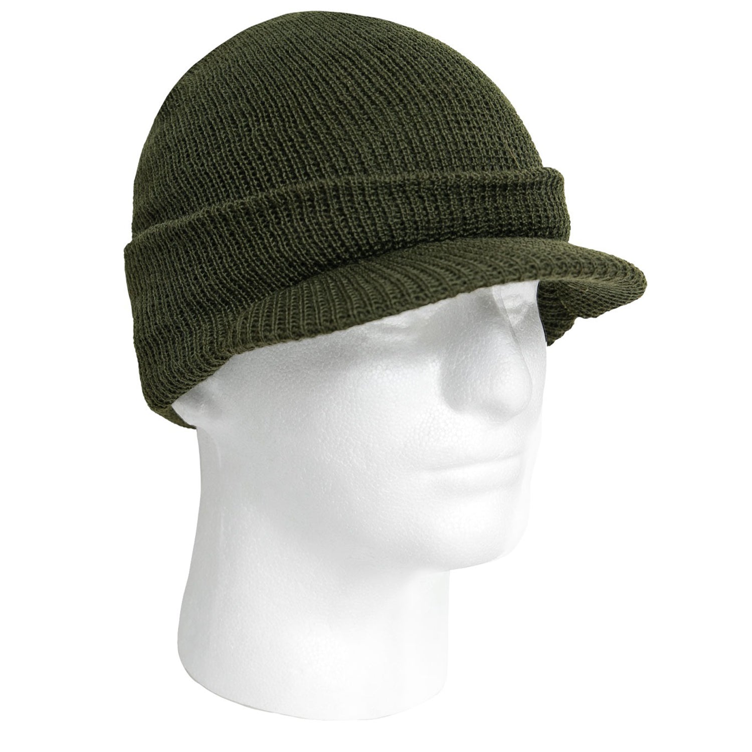 Rothco G.I. Wool Watch Cap with Brim (US-Made) — 100% Wool, Rib-Knit