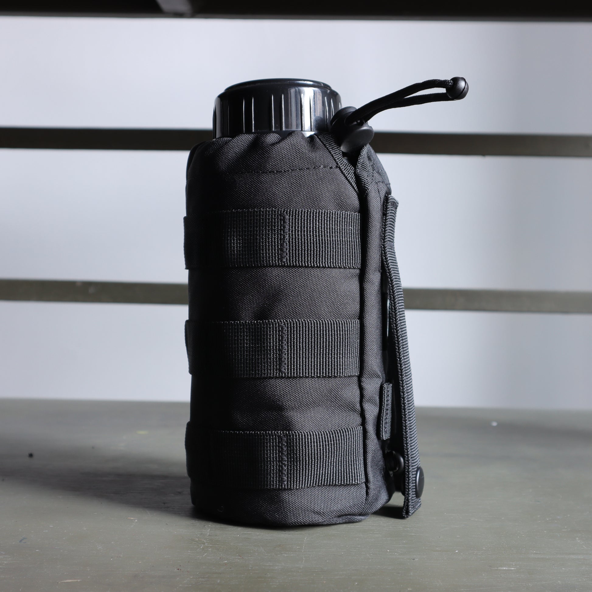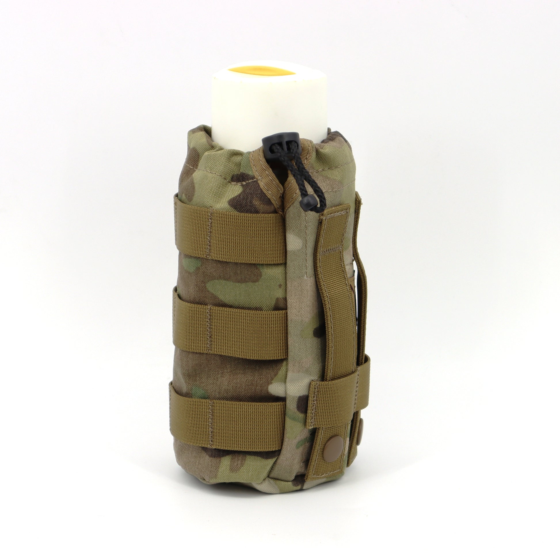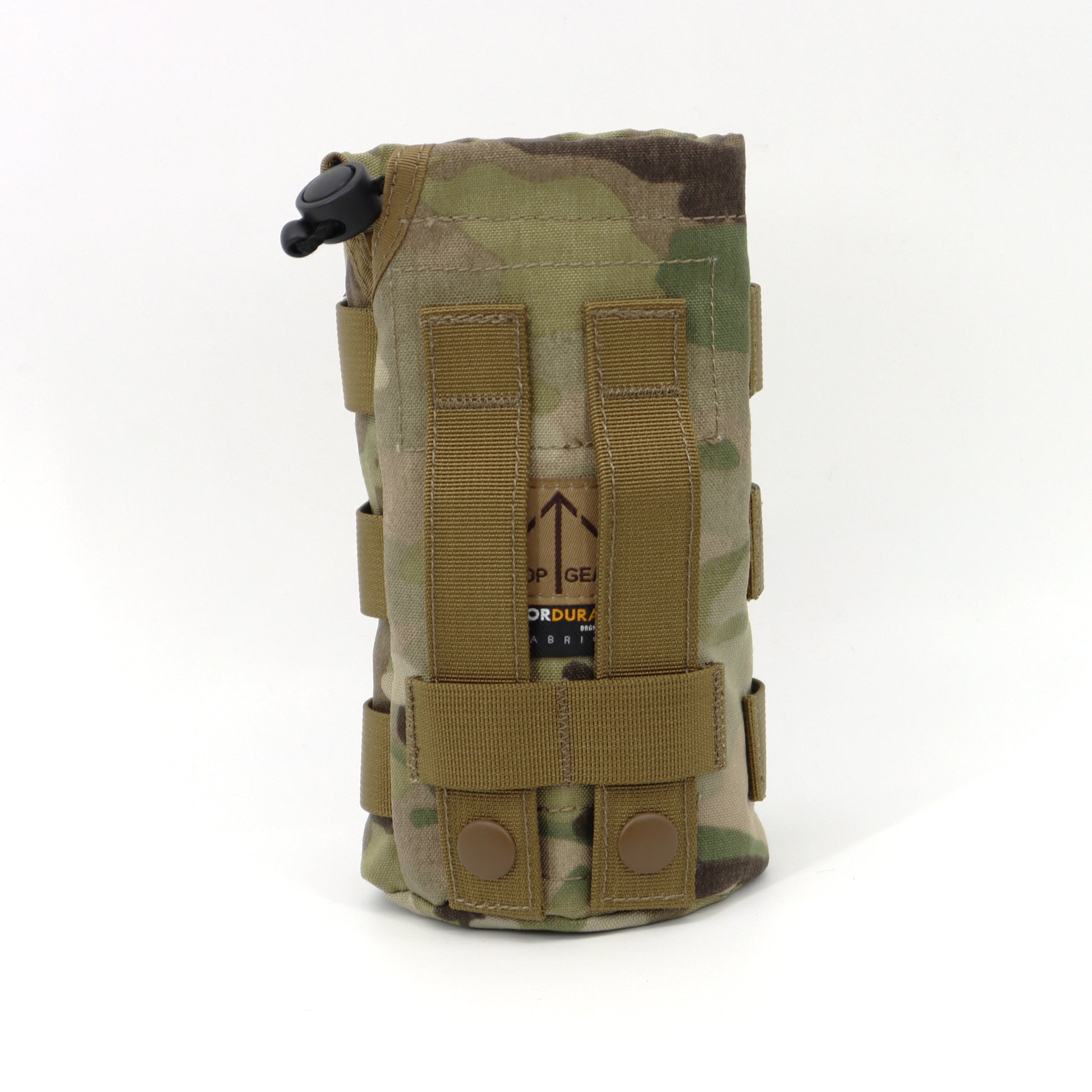 配備MOLLE 系統,可輕鬆附加到背包、腰帶或其他 MOLLE 裝備上,提供靈活的攜帶選擇。可調節的抽繩設計確保水壺穩固固定,適用於不同尺寸的水壺,方便快速取用。