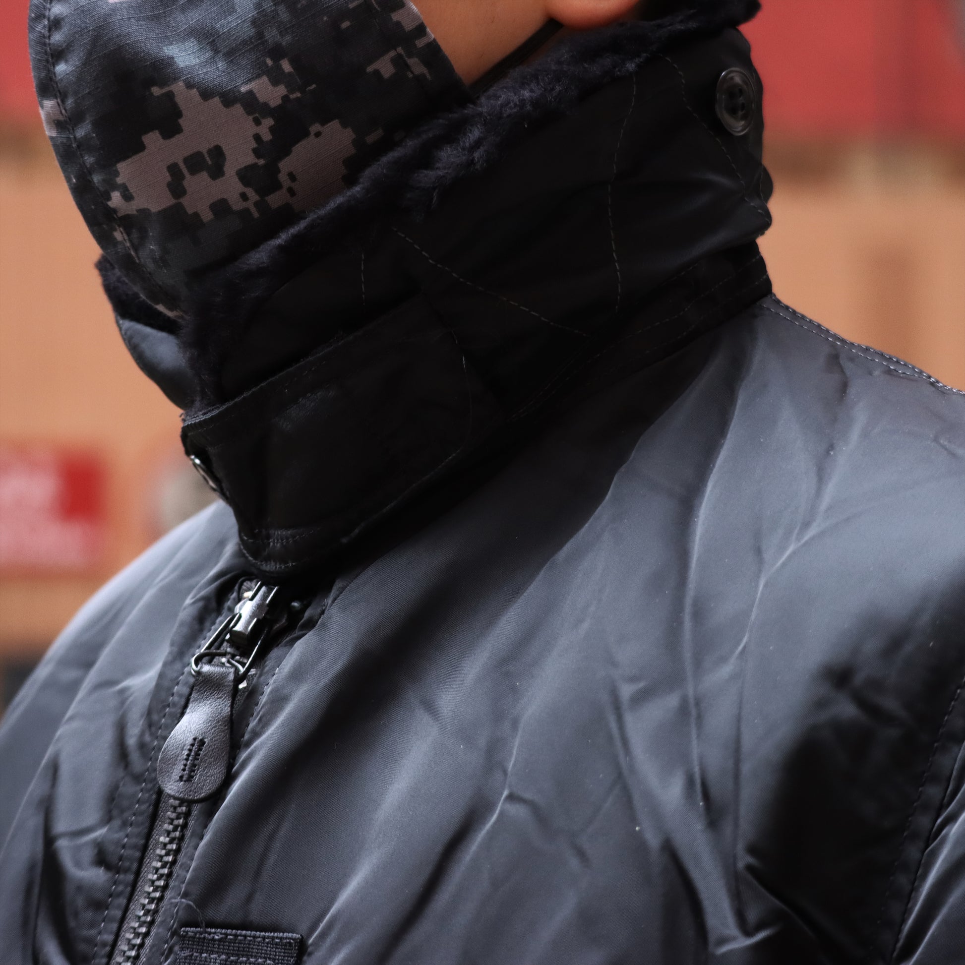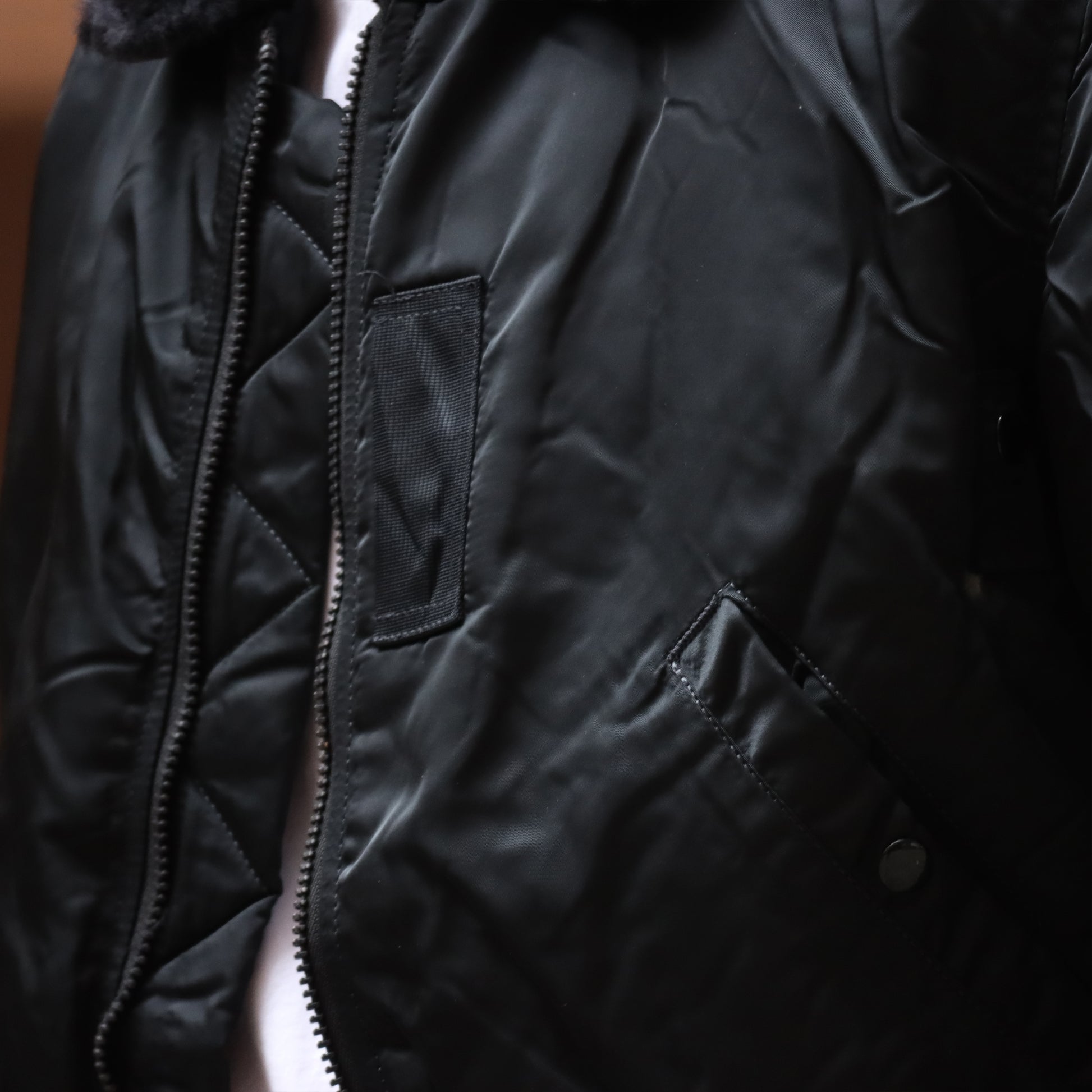 - Water repellent nylon flight satin outer shell