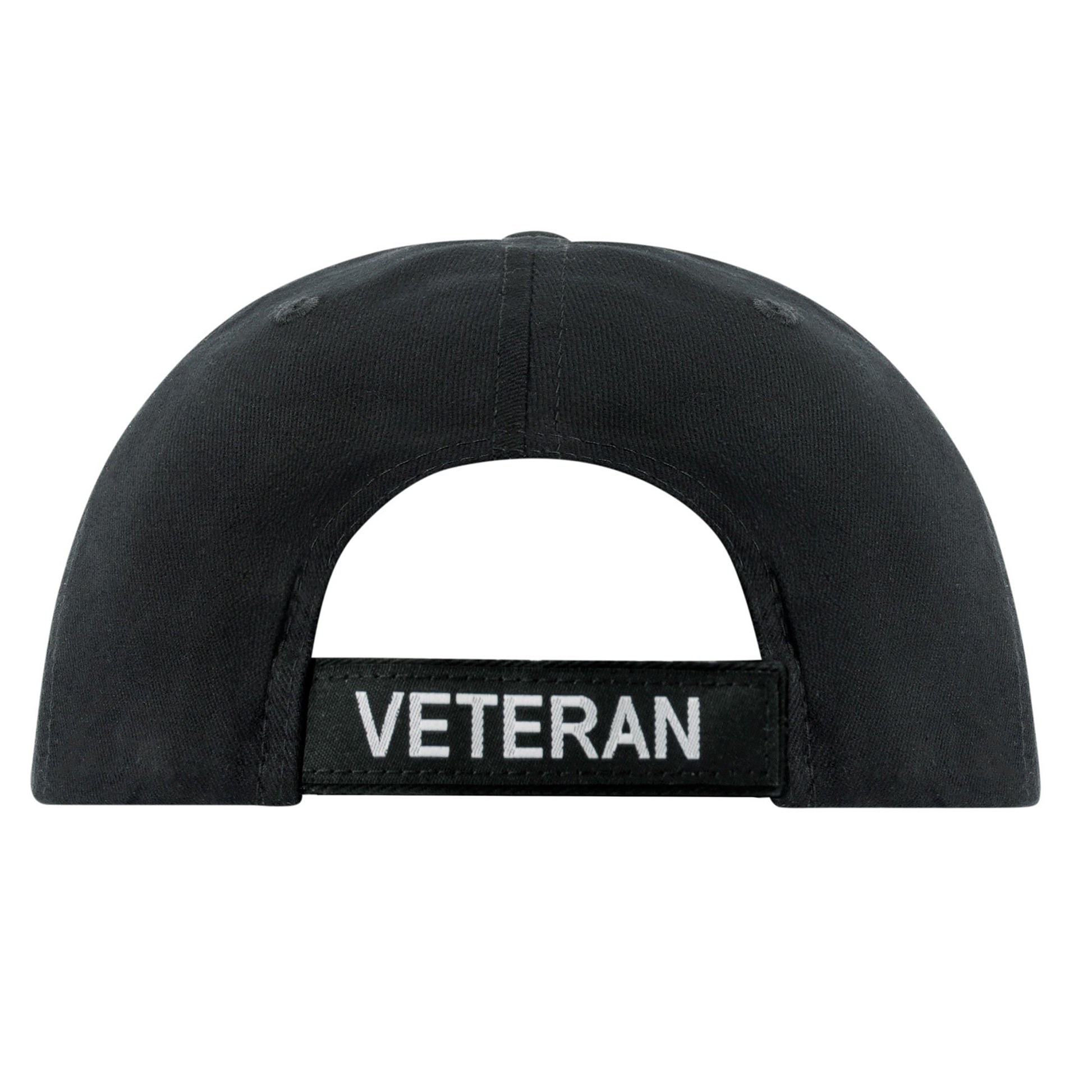後幅Hook & Loop(魔術貼)可調帶,輕鬆微調適配多數成人頭圍;背帶繡有 VETERAN 細節。