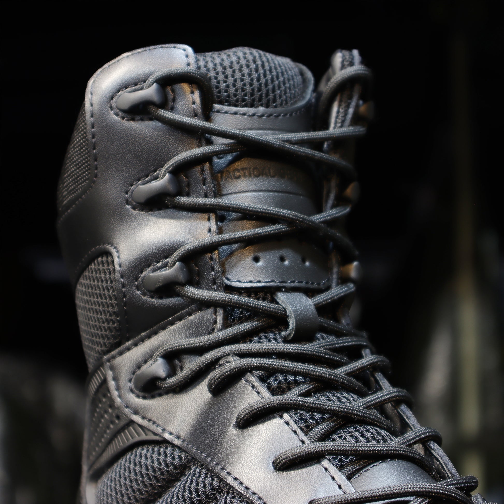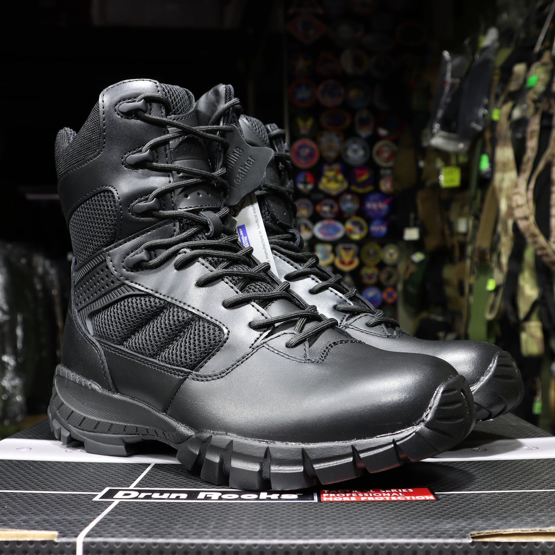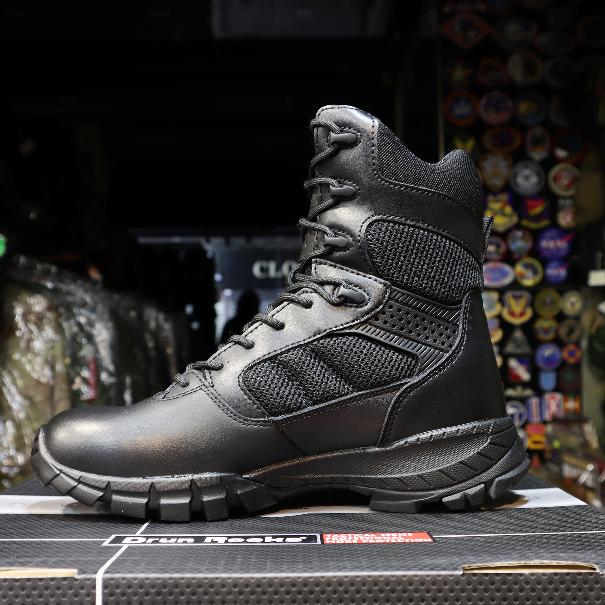 DrunRocks 8" Vibram透氣戰術靴專為戰術操作人員、特種部隊及專業安保人員設計,採用了防滑耐油的意大利Vibram 外底,抗穿刺的Texon中底,加固的腳跟穩定器和鞋頭盒,旨在提供卓越的保護性、舒適性及透氣性。這款戰術靴子適合各種嚴苛的工作環境及戶外活動,為你提供極高的性能及出眾的外型。