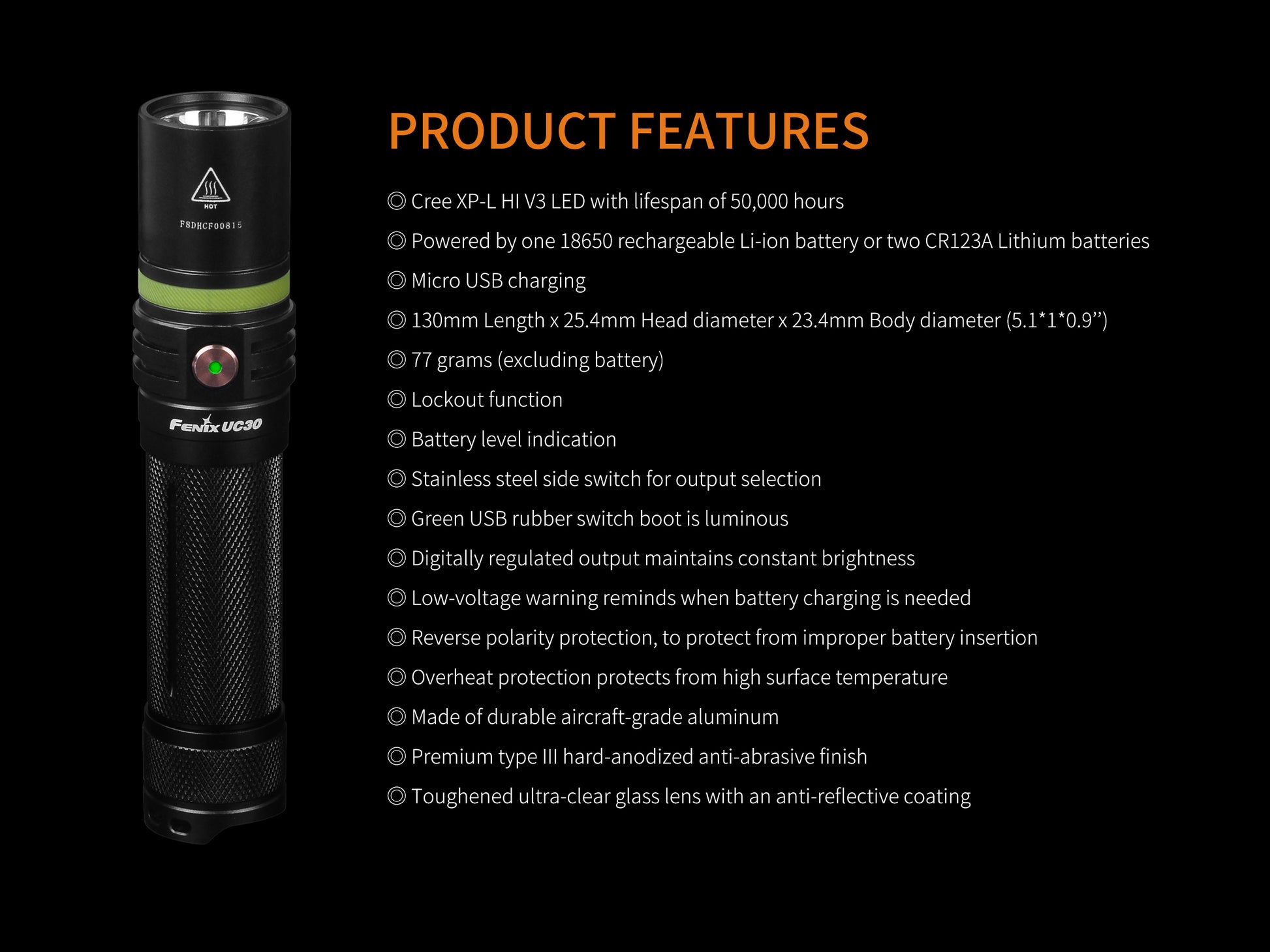 FENIX UC30 USB RECHARGEABLE FLASHLIGHT