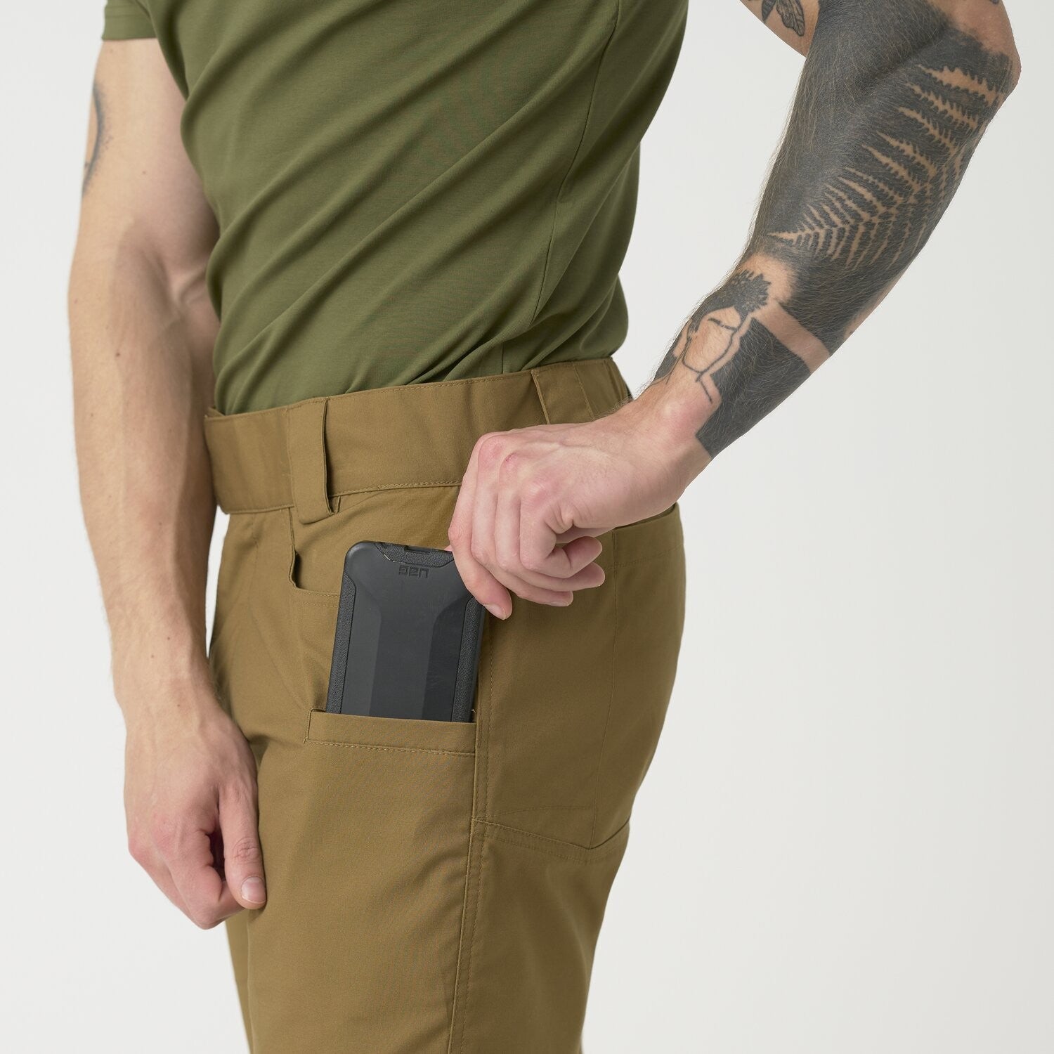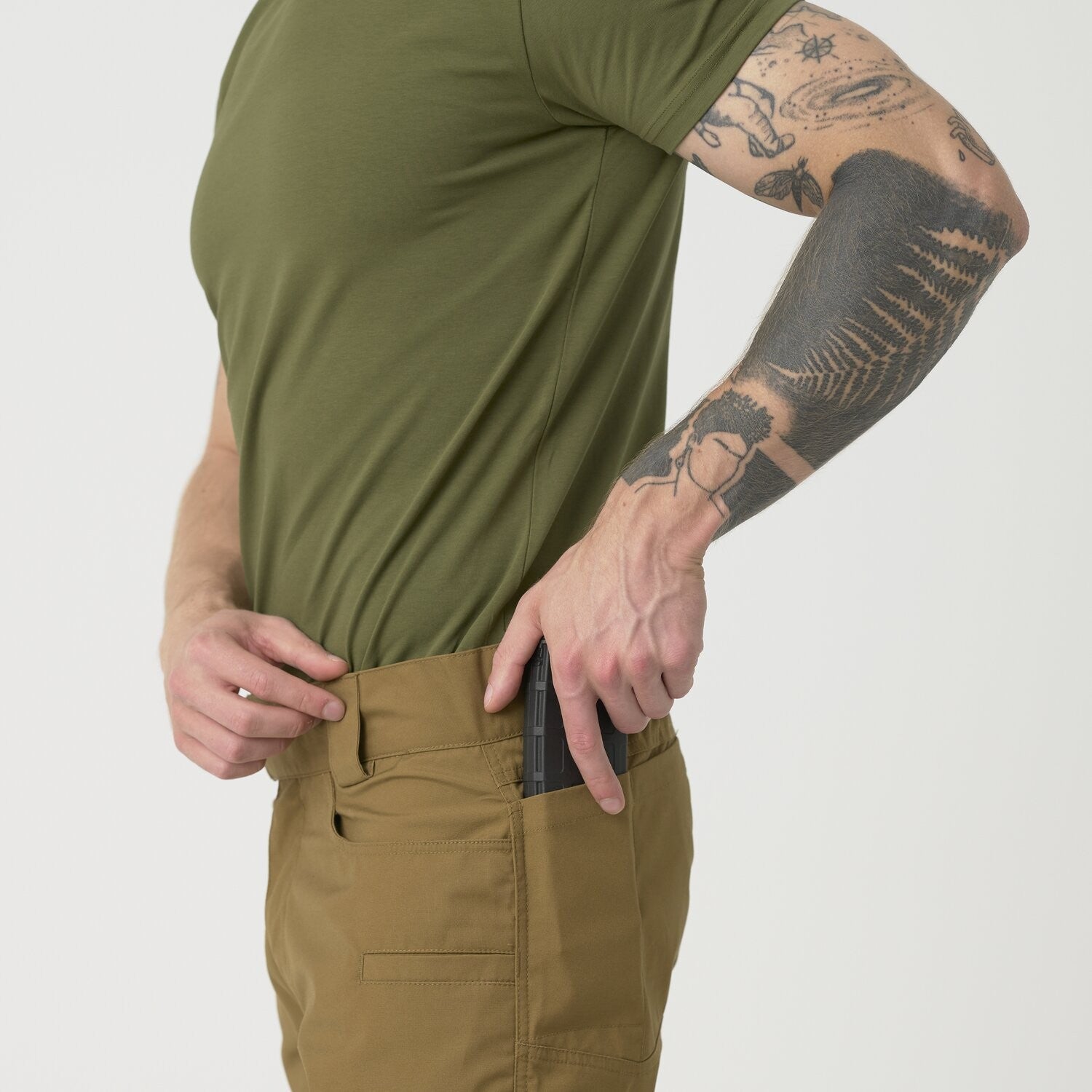 Helikon GTS 城市戰術短褲是專為城市環境設計的,採用低調的風格,同時保留了戰術服裝的多功能性,非常適合日常使用。短褲設有9 個口袋,非常適合攜帶 EDC(Every Day Carry)設備,例如手電筒、折疊刀或移動充電裝置。同時,內襠使用了三角形襯料和可調節的彈性魔術貼開合,增加了活動範圍。腰帶環可配置寬達50 毫米的腰帶/皮帶,允許使用 EDC、UTL® 或 Cobra® 等多種寬腰帶。
