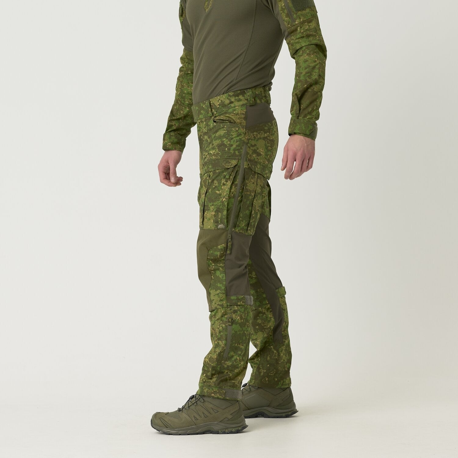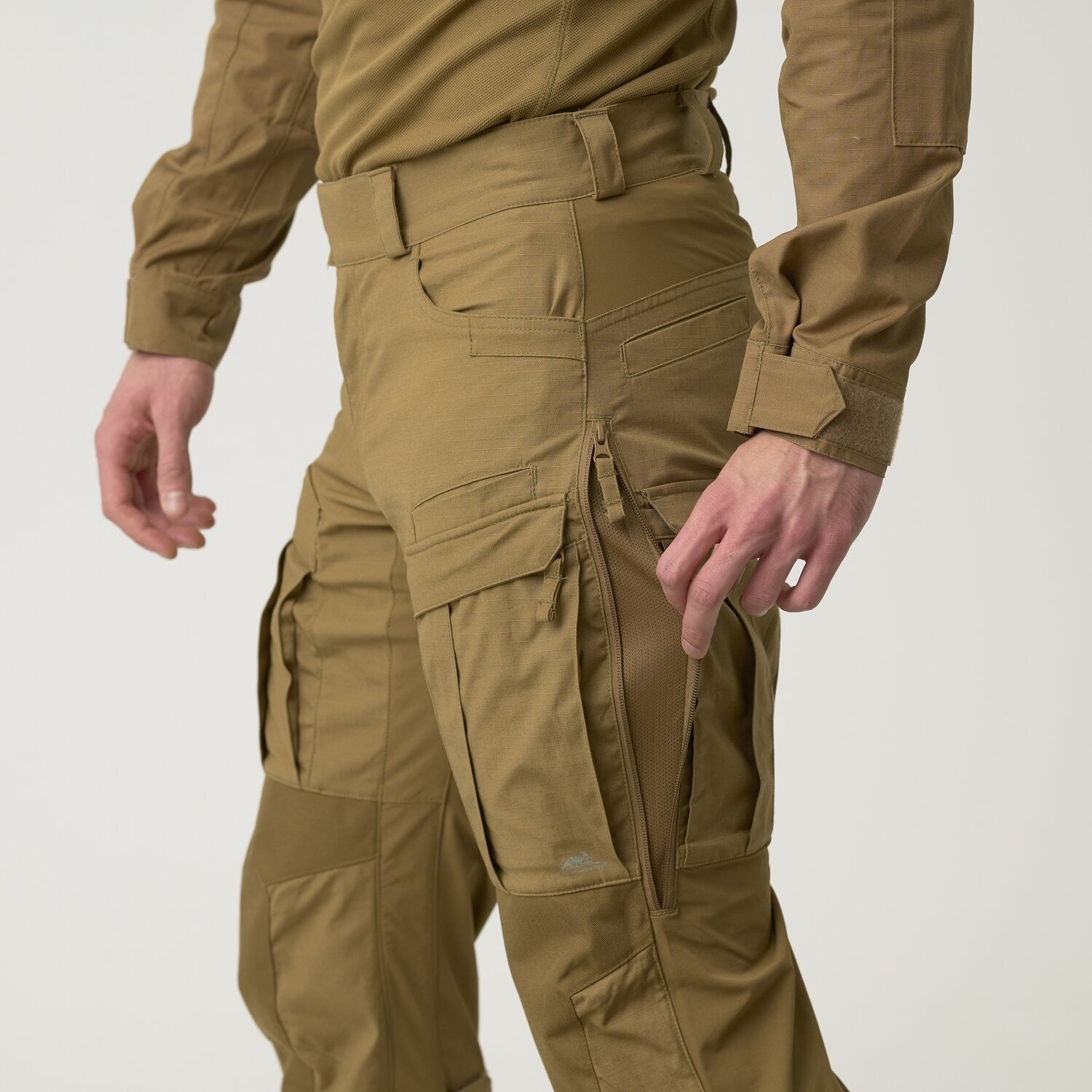 人體工學修身剪裁,上身配搭板背(plate carrier)、胸掛(chest rig)或戰術背心(Tactical Vest)仍貼合平整;腰頭兼容40 mm腰帶,徒步與乘車切換順暢。