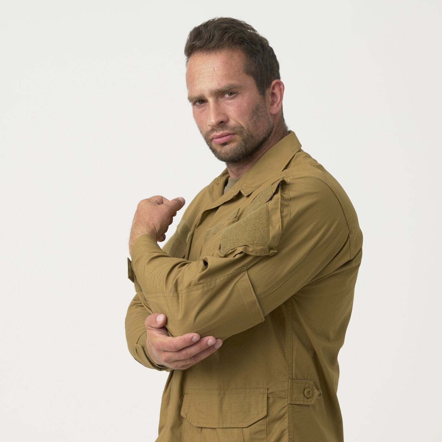 SFU™ NEXT® 是 Helikon-TEX 的經典產品之一,以 SFU(特種部隊單位)的實際使用需求為基礎,結合了傳統剪裁與現代實用性。擁有直領設計、鈕扣封口及六個帶尼龍搭扣的翻蓋口袋,能有效保護物品免受污垢和水分的侵害。胸前和上袖的斜口袋設計,使用更方便快捷,按鈕隱藏在翻蓋下,不易勾住其他裝備。加固且有輪廓的肘部設計,內部配有薄型保護墊口袋,在俯臥或爬行射擊時提供雙臂的額外保護。