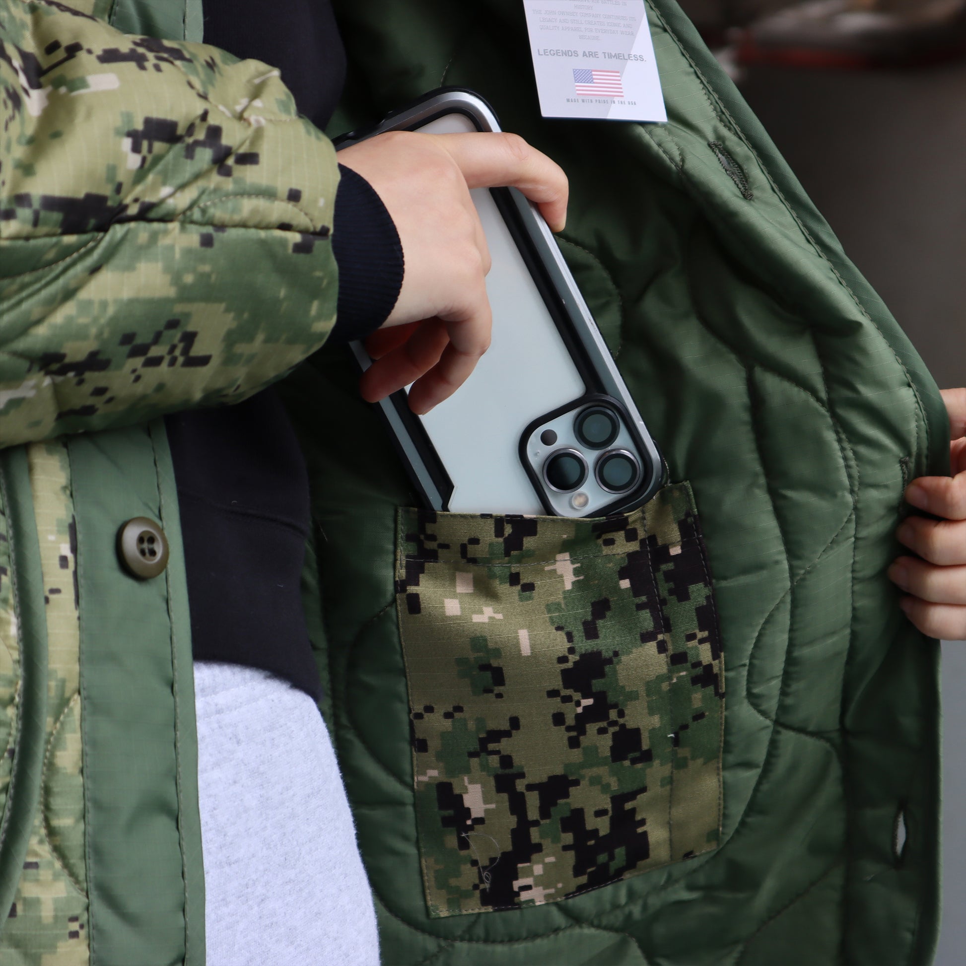 探索 John Ownbey 美國製造的軍事風格外套。這款高品質的夾克,結合了時尚與實用性。採用尼龍外層和聚酯纖維填充,保暖舒適。其獨特的內置手機和筆袋設計,讓您隨時保持物品井然有序。適合各種戶外活動,亦是日常穿搭的完美選擇。