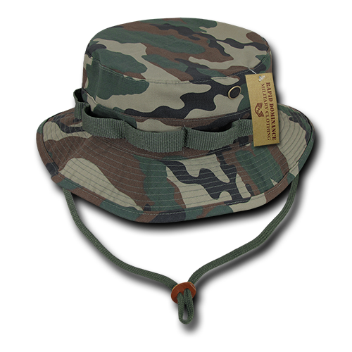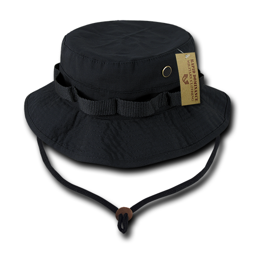 Classic Military Style Ripstop Jungle boonies features a tape band of branch loops sewn around the crown with a flat top, floppy brim, lightweight and crushable style, chin strap with leather fastener keep the hat secure on your head and 4 authentic metal mesh vents on the sides. Made to military specs from a 100% cotton ripstop fabric with a special reinforcing technique, making this hat resistant to tearing and ripping.