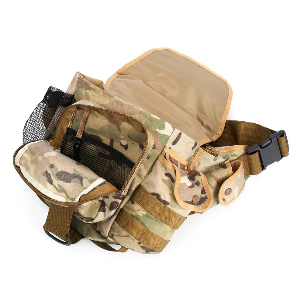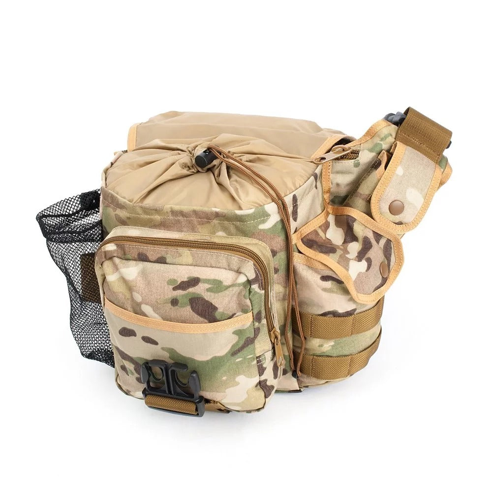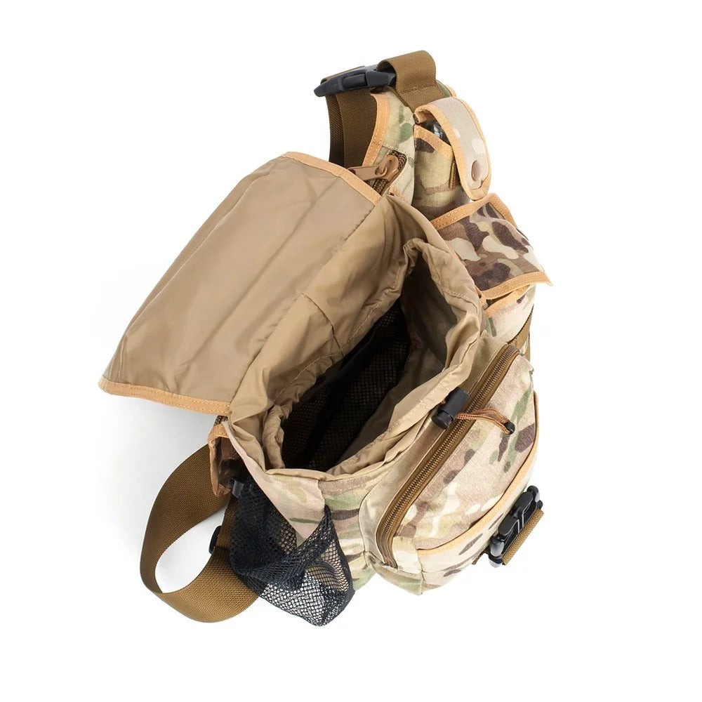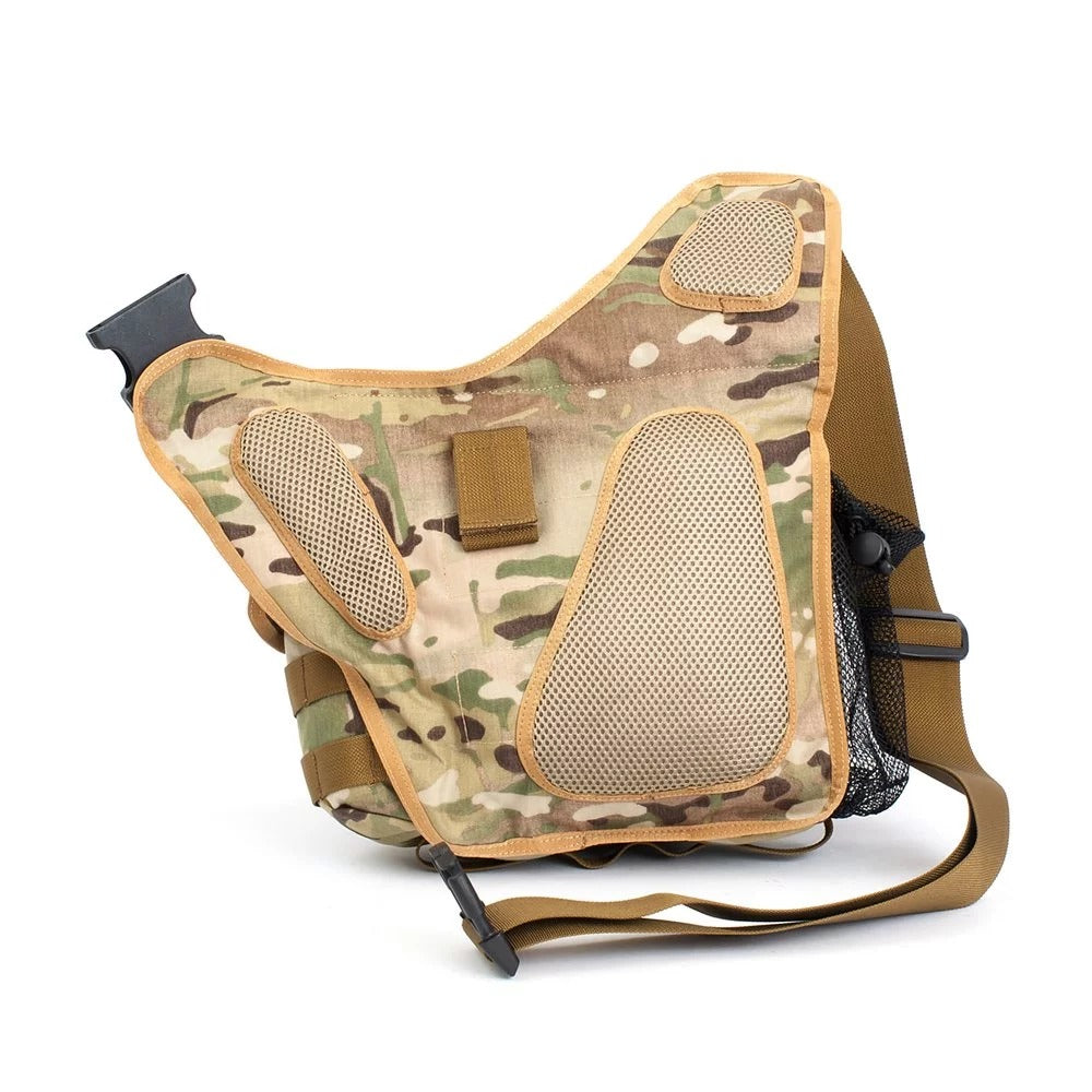 - Military-inspired tactical sling/shoulder bag