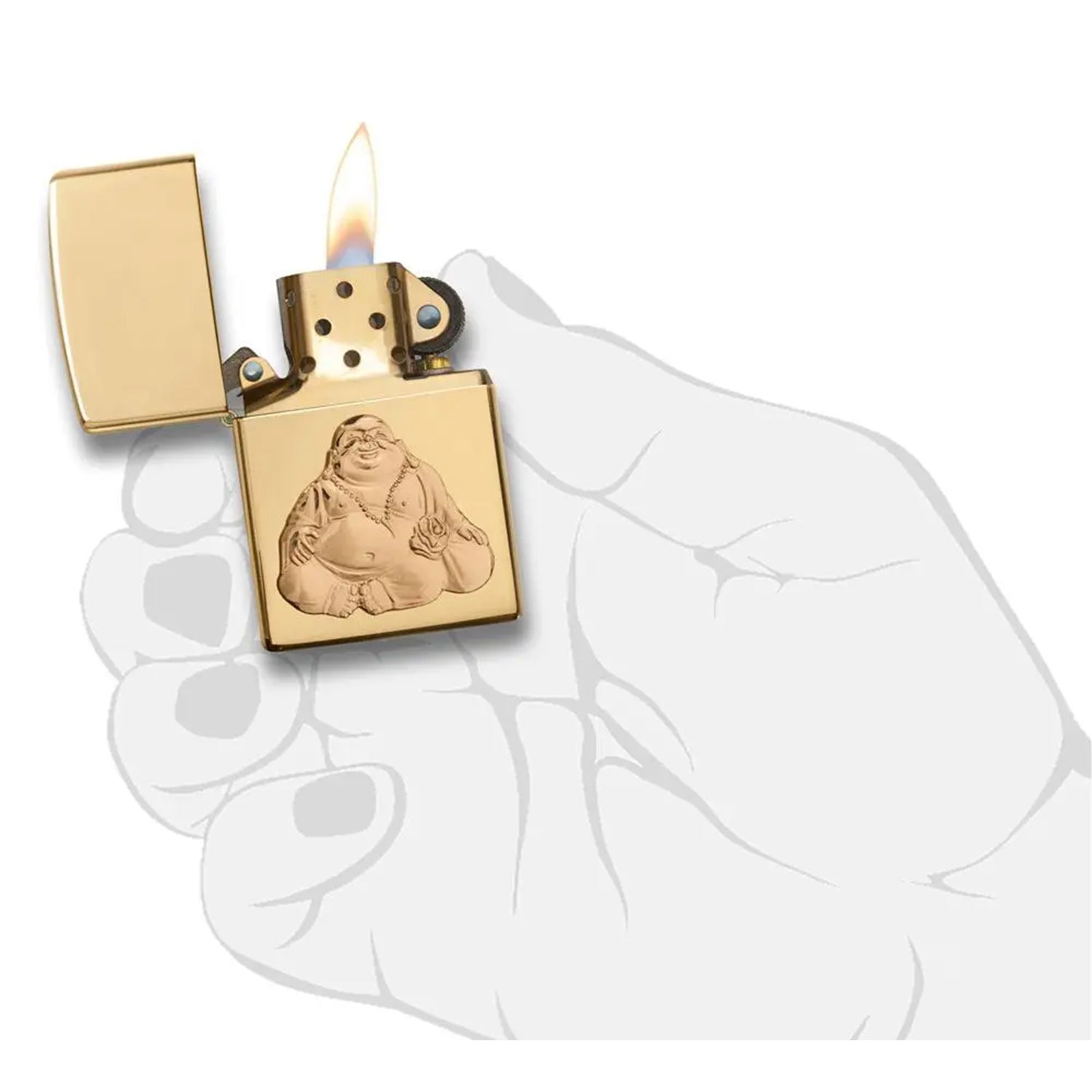 Zippo 笑佛圖案打火機以其高亮度黃銅為底色,配以笑佛圖案設計,為您帶來好運與繁榮。此款ZIPPO打火機擁有標誌性的「喀嚓」聲、堅實的全金屬結構以及卓越的防風功能,確保在各種環境下均能提供一致而穩定的使用體驗。其可重複加油的設計,配合ZIPPO專用的高品質燃油、火石和燈芯,使其成為長期耐用的選擇。每件打火機均在美國製造,提供終身保修,是對卓越品質與可靠性的承諾。無論是作為彰顯個人風格的時尚配件,抑或實用工具,還是作為精緻禮品,本款ZIPPO打火機均是極佳的選擇。